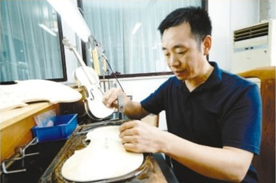 不久前,意大利小提琴博物館內(nèi),這把來自中國的金屬小提琴引得觀眾驚嘆不已。金光明亮耀眼,線條流暢有致,琴面光滑柔和,中國民族藝術與西方樂器結(jié)合,視覺與聽覺藝術交融,擦出的絢爛火花,在國際舞臺綻放……
