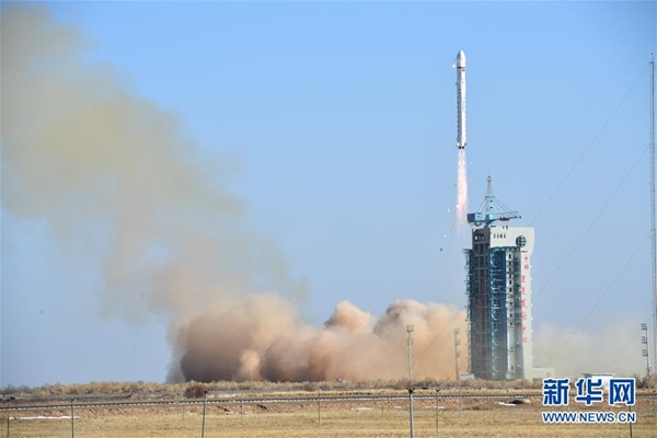 2018年1月13日15時10分,我國在酒泉衛(wèi)星發(fā)射中心用長征二號丁運載火箭,成功將陸地勘查衛(wèi)星三號發(fā)射升空,衛(wèi)星進入預定軌道。新華社發(fā)(汪江波 攝)