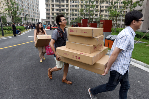 幾個新就業(yè)大學畢業(yè)生正在搬進公租房 王定昶 攝