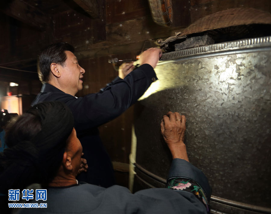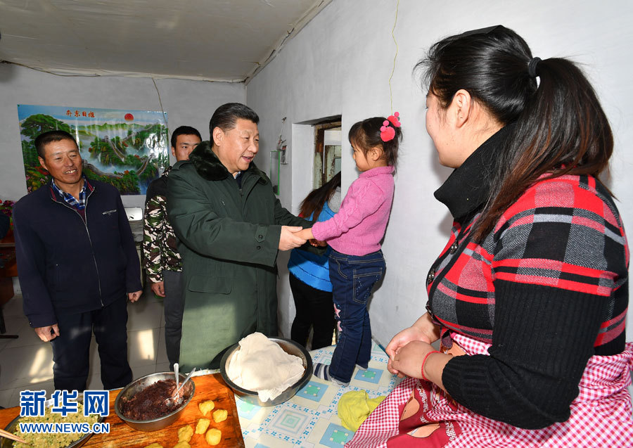在河北阜平龍泉關(guān)鎮(zhèn)駱駝灣村困難戶唐榮斌家,習(xí)近平拿起桌上的藥瓶仔細(xì)查看,囑咐老人多多保重身體。
