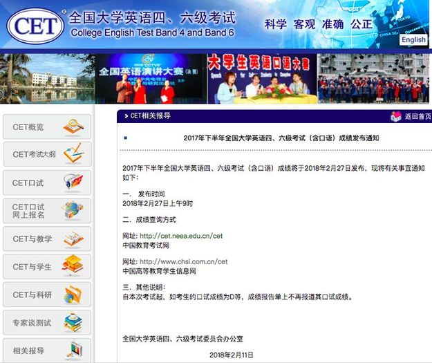 據(jù)全國(guó)大學(xué)英語(yǔ)四、六級(jí)考試委員會(huì)辦公室發(fā)布的通知,2017年下半年全國(guó)大學(xué)英語(yǔ)四、六級(jí)考試(含口語(yǔ))成績(jī)今天發(fā)布!
