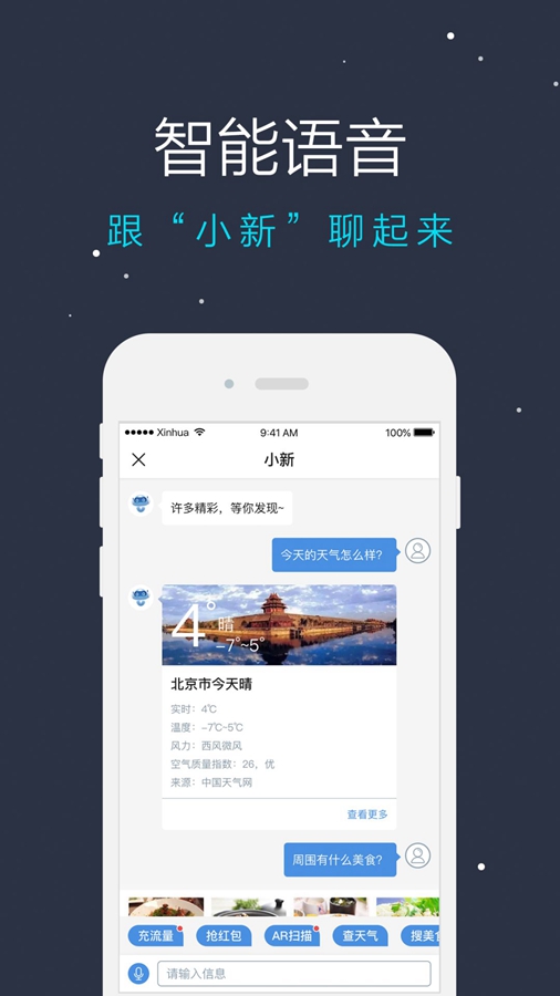 據(jù)悉,新華社客戶端還將進(jìn)一步向便民服務(wù)拓展,并接入智能語(yǔ)音交互,用戶可隨時(shí)語(yǔ)音呼叫“小新”,有問必答。