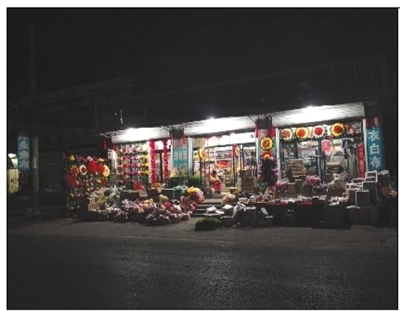 3月29日,村內(nèi)一家營(yíng)業(yè)到十一點(diǎn)多的殯葬品零售批發(fā)店。