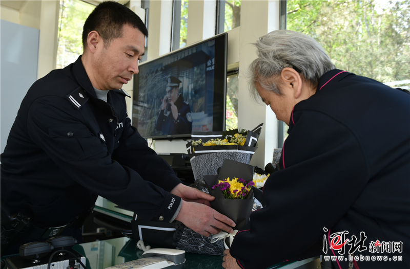 4月6日,一位市民來到石家莊市呂建江綜合警務(wù)服務(wù)站,在呂建江同志生前工作過的地方送上一束鮮花寄托哀思。 記者趙海江攝