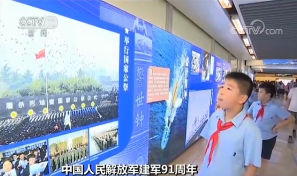 八一前夕,江蘇南京市首個(gè)國(guó)防教育主題車站建成開(kāi)放,地鐵通道“變身”國(guó)防展覽展廳,營(yíng)造濃厚八一節(jié)日氛圍。展覽主題為“愛(ài)我國(guó)防愛(ài)我軍”,一幅幅圖片濃縮著人民軍隊(duì)91年的光輝歷程。聲光電立體展示,吸引來(lái)往乘客和市民駐足參觀。