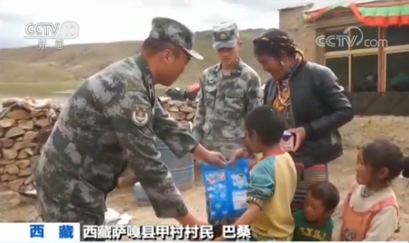 西藏薩嘎縣甲村村民巴桑說(shuō),(藏語(yǔ)翻譯成的漢語(yǔ))我們甲村這邊解放軍又來(lái)了,就是給貧困戶幫助,特別是為我們送來(lái)了急需的物資,給村里的病人看病,特別感謝解放軍。