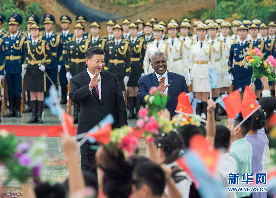 8月31日,國家主席習(xí)近平在北京人民大會堂同博茨瓦納總統(tǒng)馬西西舉行會談。這是會談前,習(xí)近平在人民大會堂北大廳為馬西西舉行歡迎儀式。 新華社記者 翟健嵐 攝