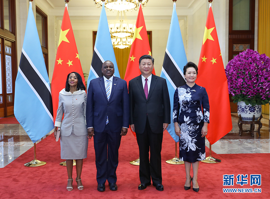 8月31日,國家主席習(xí)近平在北京人民大會堂同博茨瓦納總統(tǒng)馬西西舉行會談。這是習(xí)近平和夫人彭麗媛同馬西西夫婦合影。 新華社記者 鞠鵬 攝