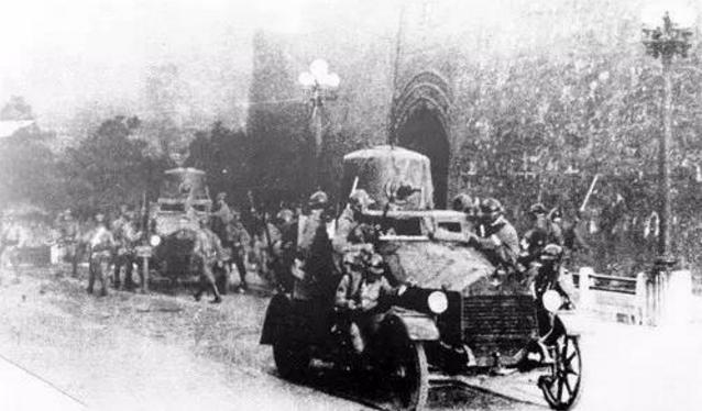 圖示:日軍裝甲車行駛在沈陽(yáng)的大街上