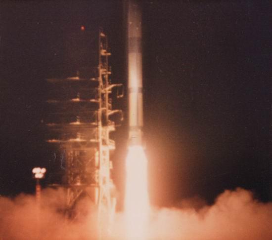 圖示:1970年4月24日,運(yùn)載我國(guó)第一顆人造地球衛(wèi)星的“長(zhǎng)征”一號(hào)運(yùn)載火箭成功發(fā)射
