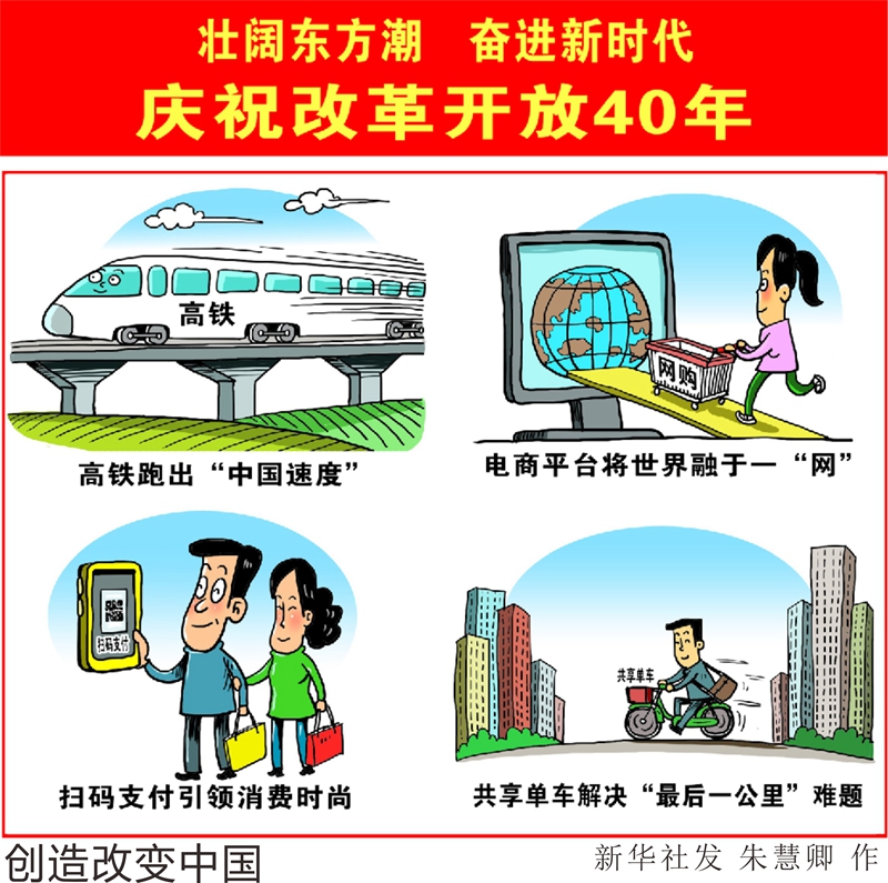 創(chuàng)新:當(dāng)天宮、蛟龍、天眼、悟空、墨子、大飛機等重大科技成果相繼問世,當(dāng)高鐵跑出“中國速度”,電商平臺將世界融于一“網(wǎng)”,掃碼支付引領(lǐng)消費時尚,共享單車為“最后一公里”提供解決方案,中國人民的創(chuàng)造精神在新時代里正前所未有地迸發(fā)出來。↓↓