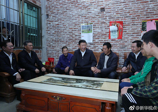 23日下午,習(xí)近平一行沿著崎嶇的山路乘車來到廣東省英德市連江口鎮(zhèn)連樟村,走進(jìn)村公共服務(wù)站、扶貧玩具加工廠車間和貧困戶家中,同村民們親切交談。他強(qiáng)調(diào),全面建成小康社會(huì)一個(gè)都不能少,在脫貧攻堅(jiān)戰(zhàn)中,基層黨組織要發(fā)揮戰(zhàn)斗堡壘作用,一任接著一任抓,一仗接著一仗打,一代接著一代干,積小勝為大勝,最后取得全面勝利。要認(rèn)真抓好鄉(xiāng)村振興戰(zhàn)略,在脫貧致富基礎(chǔ)上加快推動(dòng)鄉(xiāng)村全面振興,實(shí)現(xiàn)農(nóng)業(yè)農(nóng)村現(xiàn)代化。我們相信,我國廣大農(nóng)民生活一定能越來越幸福。(記者:張曉松、鞠鵬)