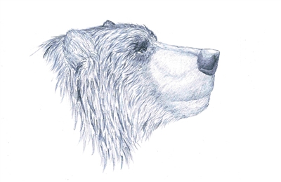 江左其杲手繪的洞熊頭部復(fù)原圖。