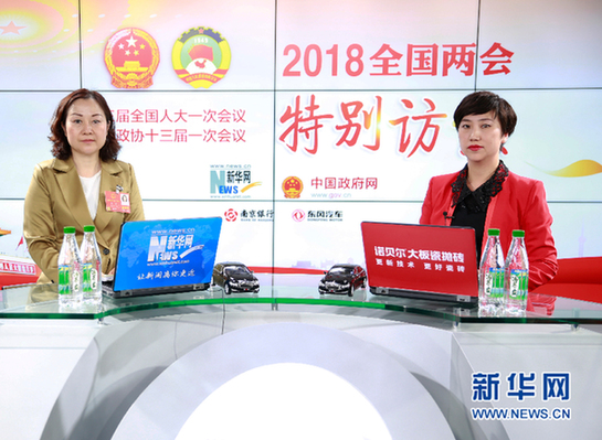 圖為全國人大代表、新野鼎泰高科精工科技有限公司總經(jīng)理王馨做客新華網(wǎng)2018全國兩會特別訪談