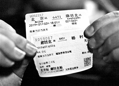 秘京春告訴北京青年報記者,6451次最初是給鐵路職工上下班的通勤車,使用最簡易的車廂,鐵路職工免費乘坐,同時面向社會開放,由于票價低廉,非常貼近普通百姓。但隨著時代發(fā)展,很多老綠皮車線路停運。為留作紀(jì)念,秘京春購買了6451/6452次最后一趟的全程車票,單程票價6.5元。但他并不打算坐滿全程,而是到廊坊北下車,再轉(zhuǎn)乘別的列車返京,用他的話說是“買長坐短”。