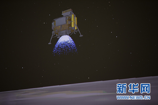 圖為1月3日在北京航天飛行控制中心拍攝的降落過(guò)程(示意圖)。新華社記者 金立旺攝