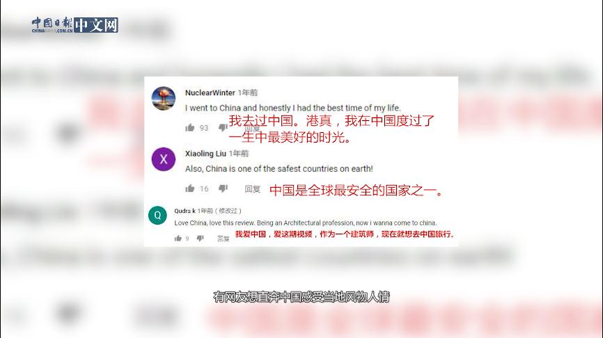 2018年12月23日,旅游博主“Travellight”在YouTube發(fā)布題為“我太想念中國(guó)”的視頻,該視頻點(diǎn)擊量高達(dá)12.1萬(wàn)次。她在視頻中表示,剛剛離開中國(guó)幾個(gè)月,就迫不及待地想回來。