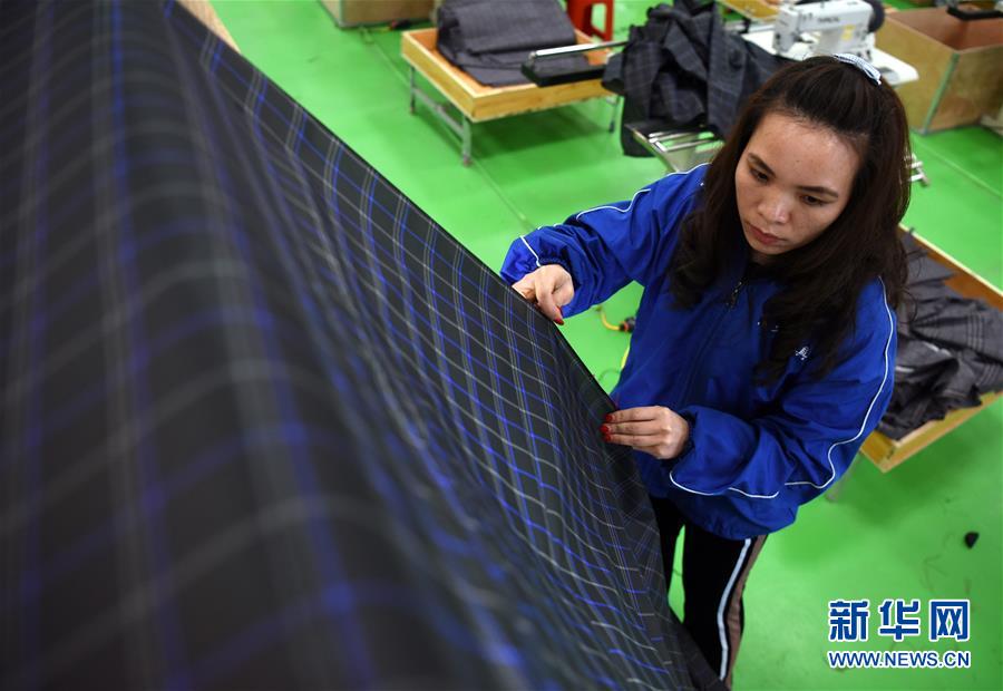 工人在鞋業(yè)加工廠的“扶貧車間”內(nèi)剪裁鞋面