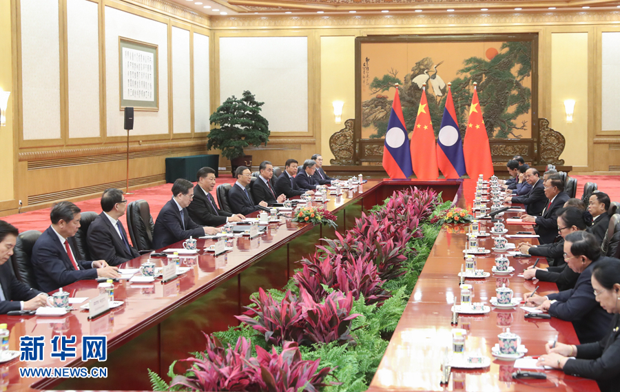 4月30日,中共中央總書記、國家主席習(xí)近平在北京同老撾人民革命黨中央總書記、國家主席本揚舉行會談。 新華社記者 李學(xué)仁 攝
