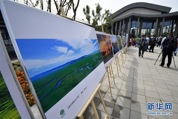 在北京世園會“內(nèi)蒙古日”文化展示活動上展出的呼倫貝爾風(fēng)光攝影作品(5月17日攝)。新華社記者 李欣 攝