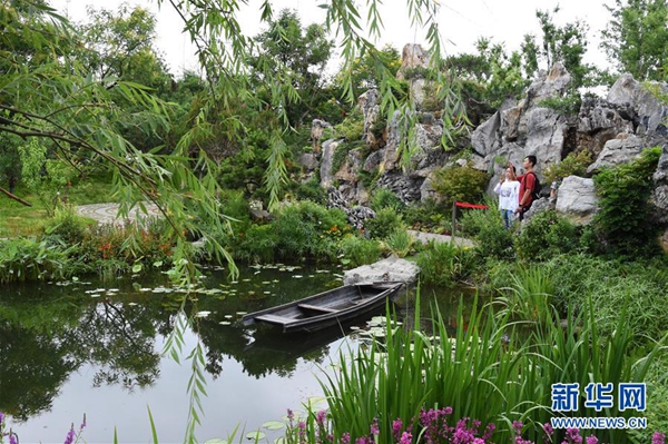 7月7日,游客在湖南園中參觀。當(dāng)日,2019年中國(guó)北京世界園藝博覽會(huì)“湖南日”活動(dòng)在北京世園會(huì)園區(qū)舉行。新華社發(fā)(任超 攝)