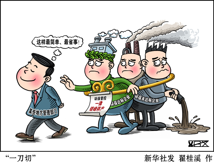 值得注意的是,有些地方“一刀切”政策開始搞移花接木。中部多家企業(yè)的相關(guān)負責(zé)人反映,遇到上級部門前來檢查、督查時,地方政府擔(dān)心指標不符合要求,就讓企業(yè)一律采取停產(chǎn)應(yīng)對??稍趯ν獍l(fā)布消息時,卻說成“企業(yè)停產(chǎn)檢修”“企業(yè)升級改造設(shè)備”,本是地方的“一刀切”要求,卻搖身一變成為企業(yè)的“自行選擇”。