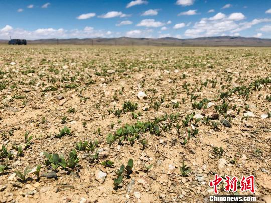 從曲麻萊縣城一路顛簸、跋山涉水6個(gè)小時(shí),曲麻萊縣麻多鄉(xiāng)黨委書記洛周江措帶著記者來(lái)到了已經(jīng)種植兩年的10萬(wàn)畝中藥種植基地。這里,曾經(jīng)是10萬(wàn)畝已經(jīng)嚴(yán)重沙化的草場(chǎng)。因?yàn)橥恋厣郴瘒?yán)重,全鄉(xiāng)接近70%的牧戶都外遷到了格爾木和稱多縣的清水河鄉(xiāng)等地。