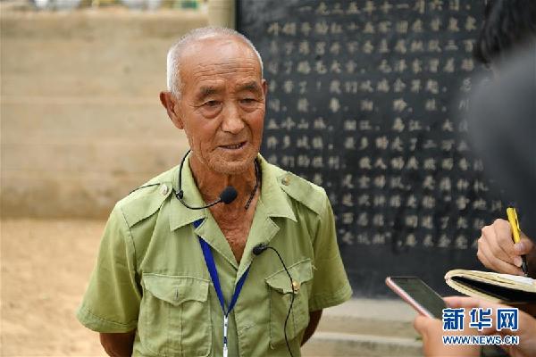 8月8日,83歲的甘泉縣象鼻子灣村村民賈生貴講述當(dāng)年“雪地講話(huà)”的情形。新華社記者 張博文 攝