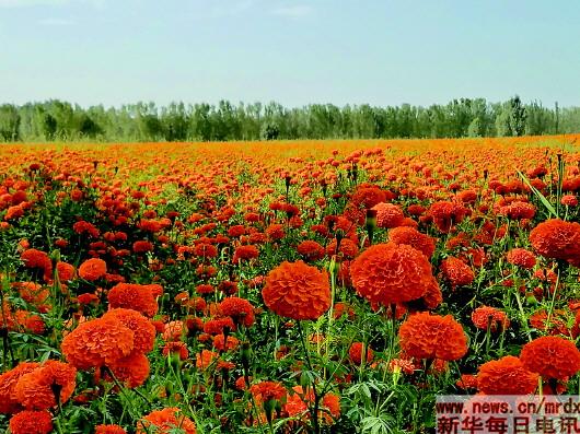 莎車(chē)集中連片種植的萬(wàn)壽菊宛如“花的海洋”。
