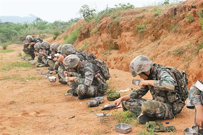 炊事班不得不停止作業(yè),消除車轍等痕跡,火速向第二陣地轉(zhuǎn)移。洗菜、切菜、炒菜……忙活一小時(shí),飯菜終于做好了,正準(zhǔn)備開飯,可“敵人”又調(diào)集兵力發(fā)動(dòng)突襲,戰(zhàn)士們不得不饑腸轆轆迎戰(zhàn)。
