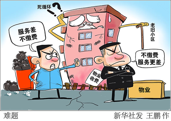 垃圾隨意丟棄、車(chē)輛亂停亂放、流動(dòng)商販隨意出入……當(dāng)前,有的老舊小區(qū)根本沒(méi)有物業(yè)管,有的物業(yè)管得很差。一些居民因物業(yè)“服務(wù)差”不繳費(fèi),而物業(yè)也往往以“入不敷出”為由敷衍了事。