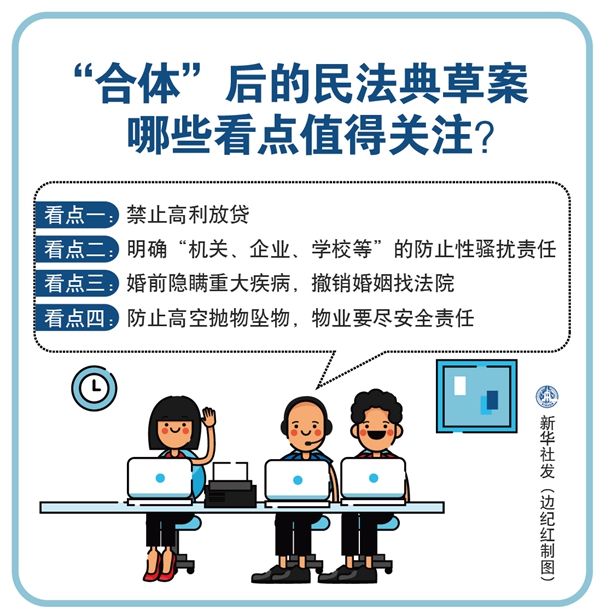 從明確禁止高利放貸、進(jìn)一步完善防止性騷擾有關(guān)規(guī)定,到合理確定無效婚姻的情形、完善高空拋物墜物責(zé)任規(guī)則,民法典草案的諸多新看點值得關(guān)注。