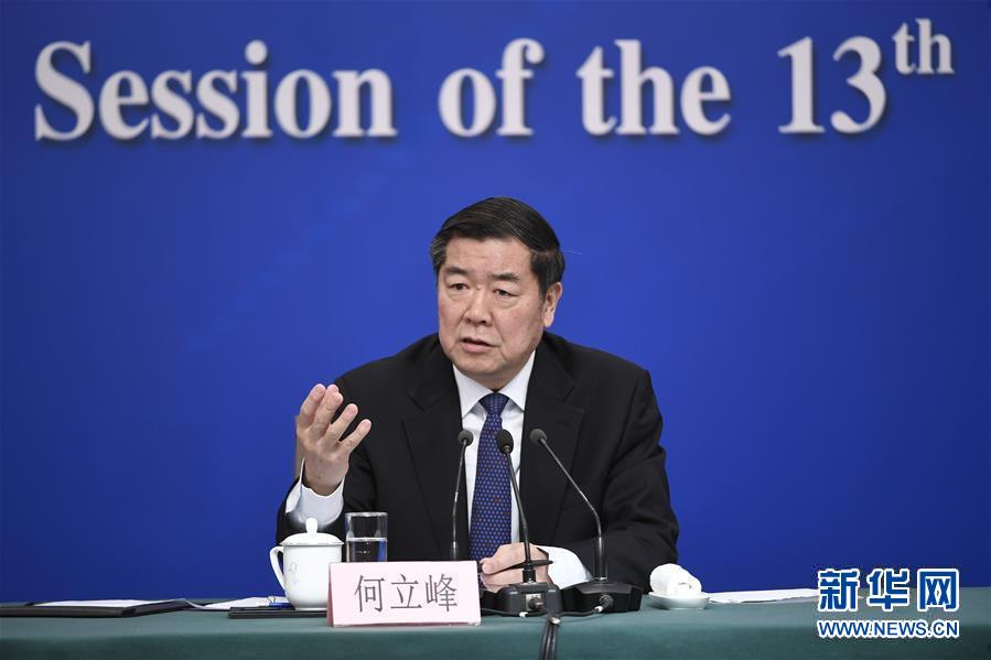 3月6日,十三屆全國人大二次會議新聞中心舉行記者會,邀請國家發(fā)展和改革委員會主任何立峰,副主任寧吉喆、連維良就“大力推動經(jīng)濟高質(zhì)量發(fā)展”相關(guān)問題回答中外記者的提問。這是何立峰在回答記者提問。 新華社記者 王鵬 攝