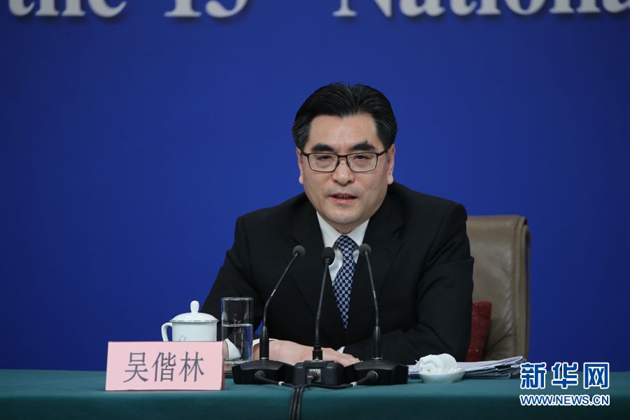 十三屆全國人大二次會議新聞中心于3月12日15時在梅地亞中心新聞發(fā)布廳舉行記者會,邀請最高人民法院審判委員會副部級專職委員劉貴祥,福建省高級人民法院院長吳偕林,江西省高級人民法院院長葛曉燕就“攻堅‘基本解決執(zhí)行難’”相關問題回答中外記者提問。圖為吳偕林回答記者提問。新華網(wǎng)/中國政府網(wǎng) 劉廈攝
