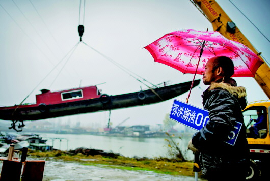 2019年12月25日下午,位于長江中游的湖北省洪湖市螺山鎮(zhèn)長江捕撈村陰雨綿綿,起重機(jī)、挖掘機(jī)、切割工具發(fā)出的轟鳴聲不絕于耳,57歲的漁民夏明星看著他祖祖輩輩謀生的家伙什——一艘10多米長的鐵制漁船被拆解,久久不愿離去,眼里不自覺地泛起了淚花。