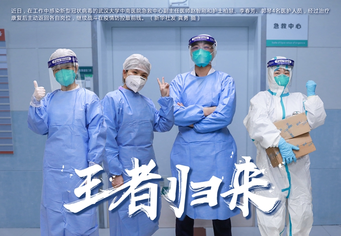 中南醫(yī)院急救中心副主任夏劍說,4名醫(yī)護(hù)人員工作中感染新型冠狀病毒,康復(fù)后不約而同重返崗位,這不僅體現(xiàn)了醫(yī)護(hù)人員無私奉獻(xiàn)精神,一定程度緩解科室醫(yī)護(hù)人員壓力,也向患者傳遞了戰(zhàn)勝疾病的信心。