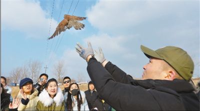 山東省青島市城陽區(qū)野生動植物保護(hù)志愿者在白沙河入??跐竦兀艢w一只救助的國家二級重點保護(hù)動物紅隼。 王海濱攝
