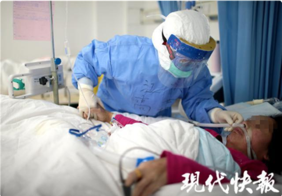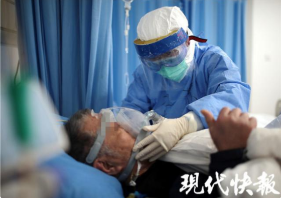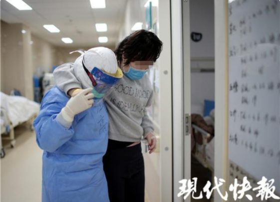 2月18日下午,現(xiàn)代快報記者走進“紅區(qū)”——重癥隔離病房里,用鏡頭記錄下一組組“我和你”的故事。