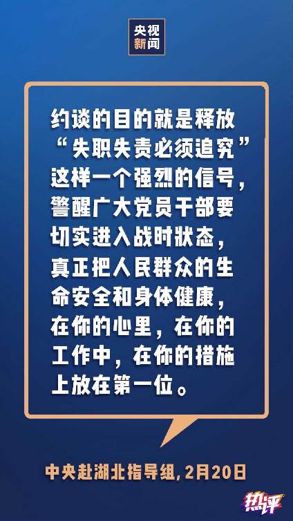 四是直接督促檢查一線黨政干部在疫情防控中的作為。既要進(jìn)行指導(dǎo),也要加強(qiáng)督查——這是習(xí)近平總書(shū)記對(duì)中央指導(dǎo)組提出的要求。連日來(lái),中央指導(dǎo)組深入一線督查、督辦,發(fā)現(xiàn)問(wèn)題后對(duì)有關(guān)市區(qū)負(fù)責(zé)人開(kāi)展約談并曝光,還深入核查解決群眾反映的突出問(wèn)題。之前公眾普遍關(guān)注的黃岡“一問(wèn)三不知”干部被問(wèn)責(zé)、武漢市區(qū)領(lǐng)導(dǎo)因轉(zhuǎn)運(yùn)病人不力被約談等,都在此列。