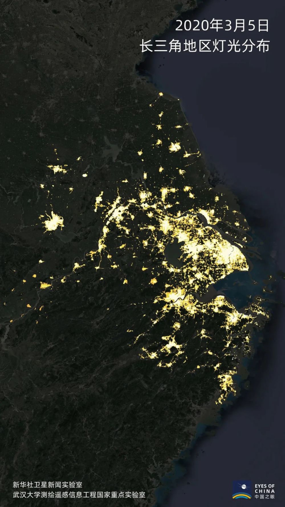 這是長三角地區(qū)3月5日夜間燈光分布情況。
