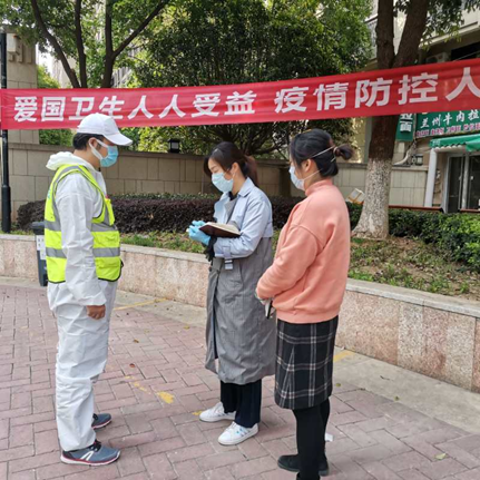 陳念在小區(qū)出入口了解防控情況。圖片由受訪者提供