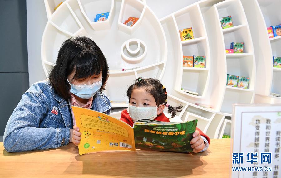 4月22日,一對(duì)母女在湖北省襄陽(yáng)市保康縣一家書(shū)店內(nèi)閱讀少兒讀物。新華社發(fā)(陳泉霖 攝)