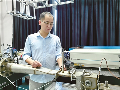 圖為尤延鋮教授在調(diào)試用于發(fā)動機燃燒室光學測量的激光測試儀器。(廈門大學供圖)