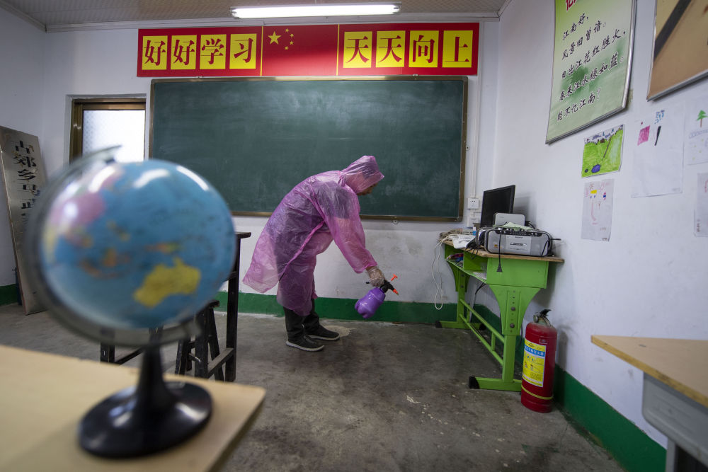 開學(xué)前兩周,學(xué)校老師在當(dāng)?shù)匦l(wèi)生院的指導(dǎo)下,對校內(nèi)教室、宿舍、食堂等地進(jìn)行消殺和通風(fēng)。