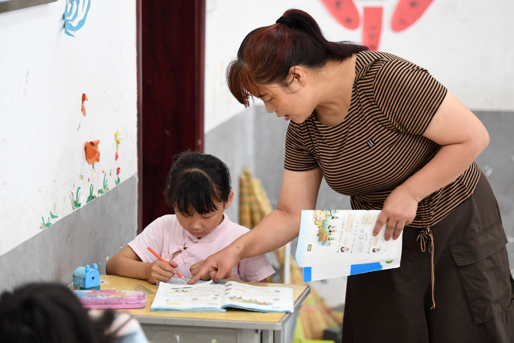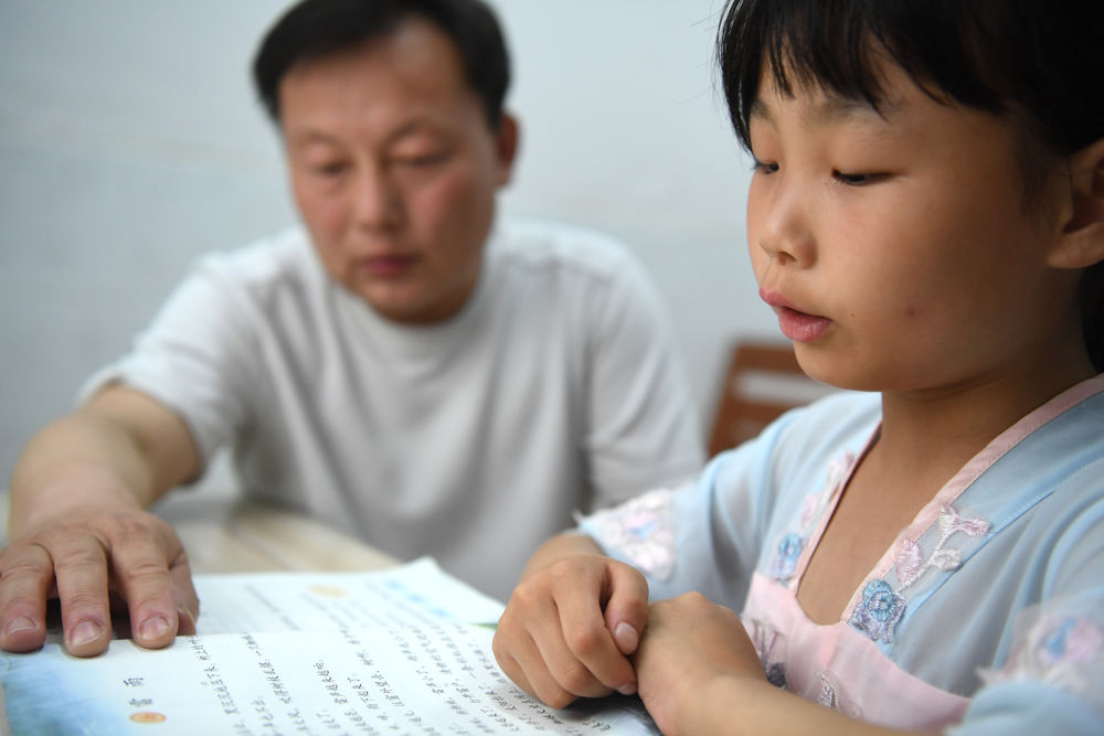 ↑?鄭加衛(wèi)在輔導(dǎo)小思揚(yáng)學(xué)習(xí)。