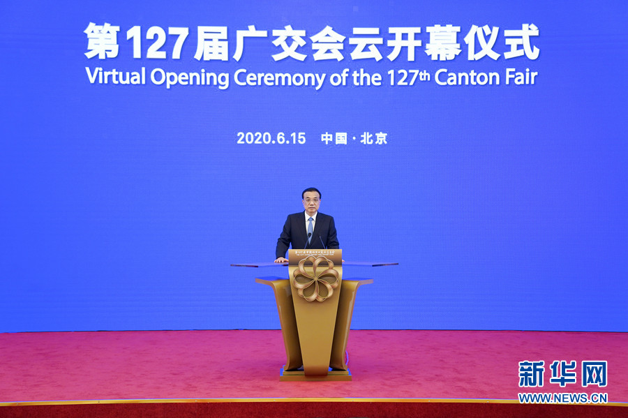 6月15日,中共中央政治局常委、國(guó)務(wù)院總理李克強(qiáng)在北京出席第127屆廣交會(huì)“云開幕”儀式。 新華社記者 張領(lǐng) 攝