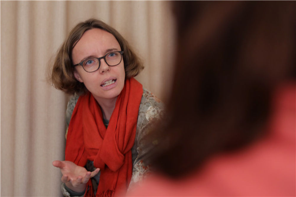 安可悅在位于西寧的心理咨詢工作室輔導(dǎo)一名來訪者(2019年10月22日攝)。新華社記者 趙玉和 攝