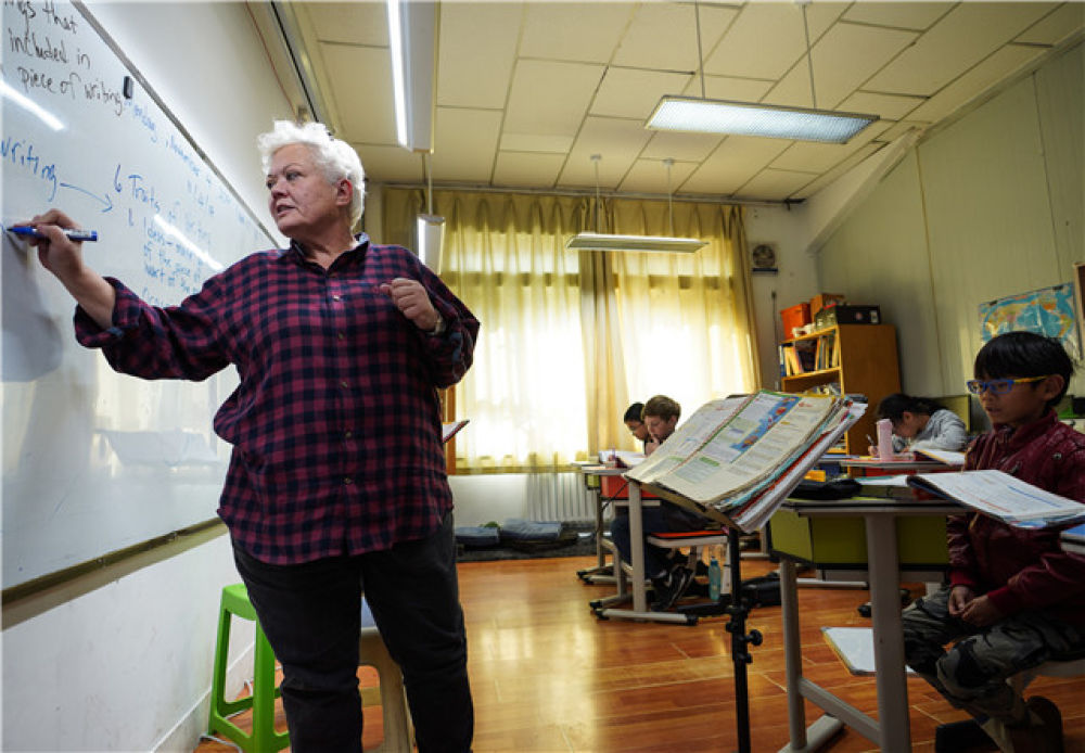 一名外籍老師在西寧市外籍人員子女學(xué)校內(nèi)為孩子們上課(2019年11月4日攝)。新華社記者 吳剛 攝