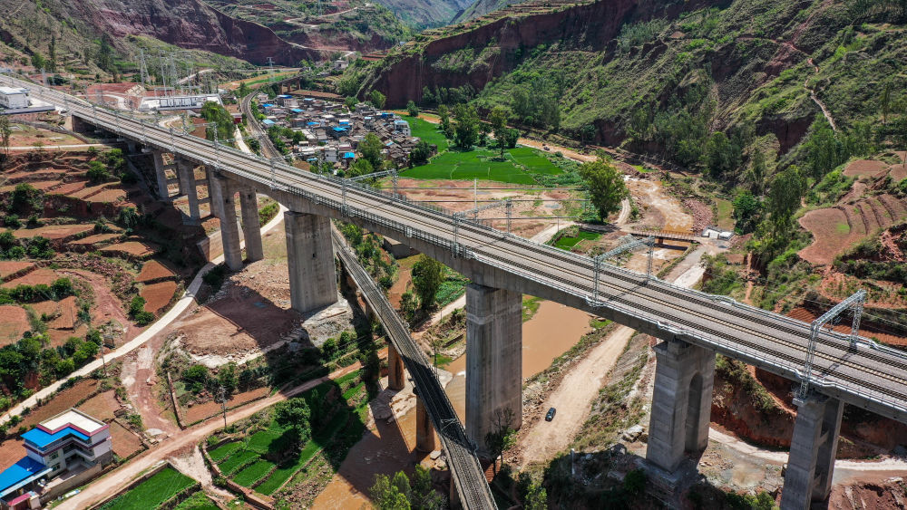 這是采用“轉體施工法”建設的大樹村龍川江三線大橋(上)一景,該橋單體轉體重量7350噸,總重量14700噸(無人機照片,6月23日攝)。新華社記者 胡超 攝