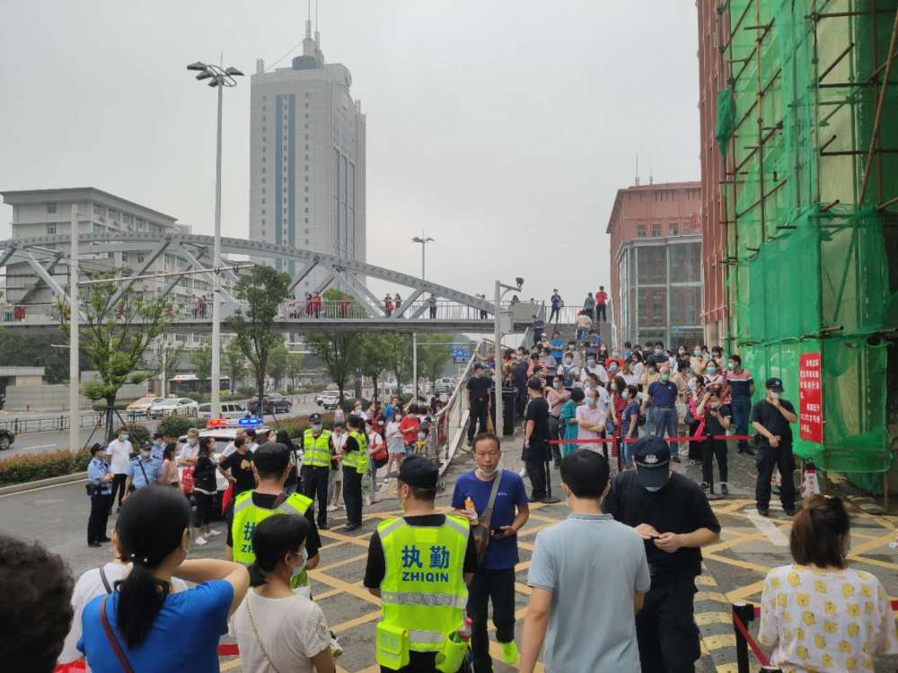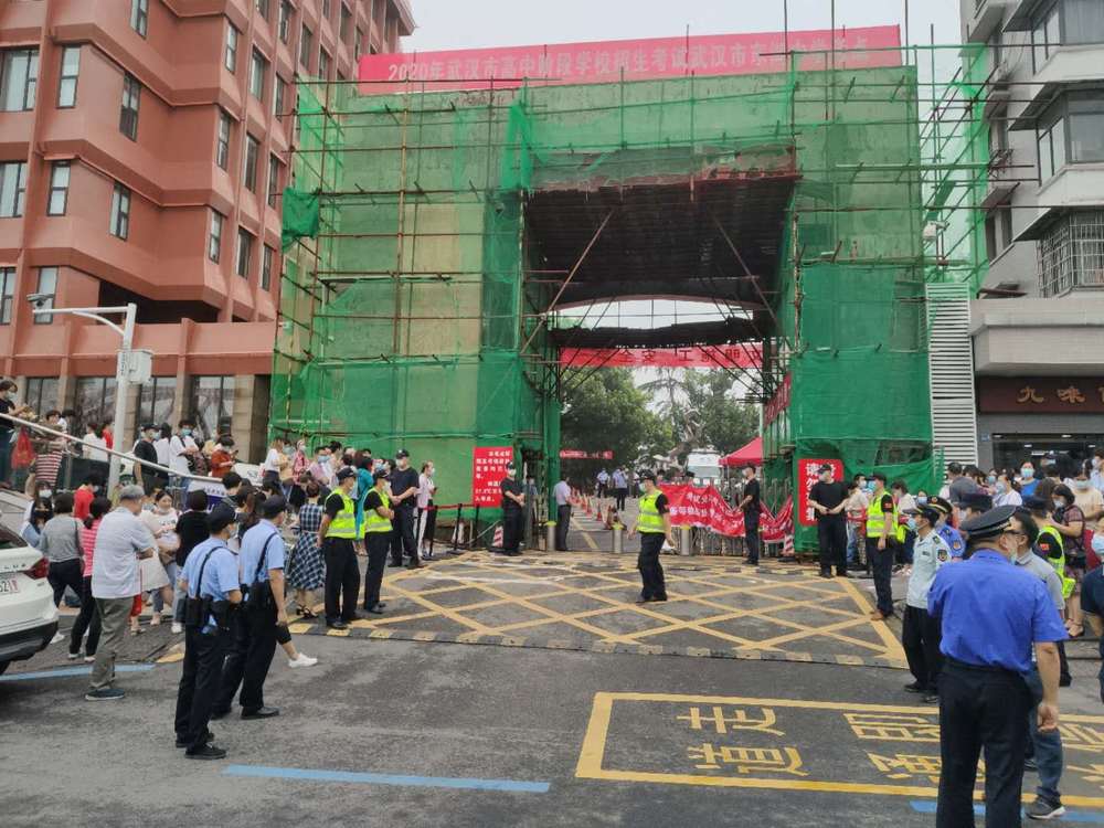 記者在武漢東湖中學(xué)考點門前看到,交警、民警、水務(wù)、電力、城管等多個部門工作人員嚴(yán)陣以待,以高考標(biāo)準(zhǔn)迎接考生進(jìn)場。